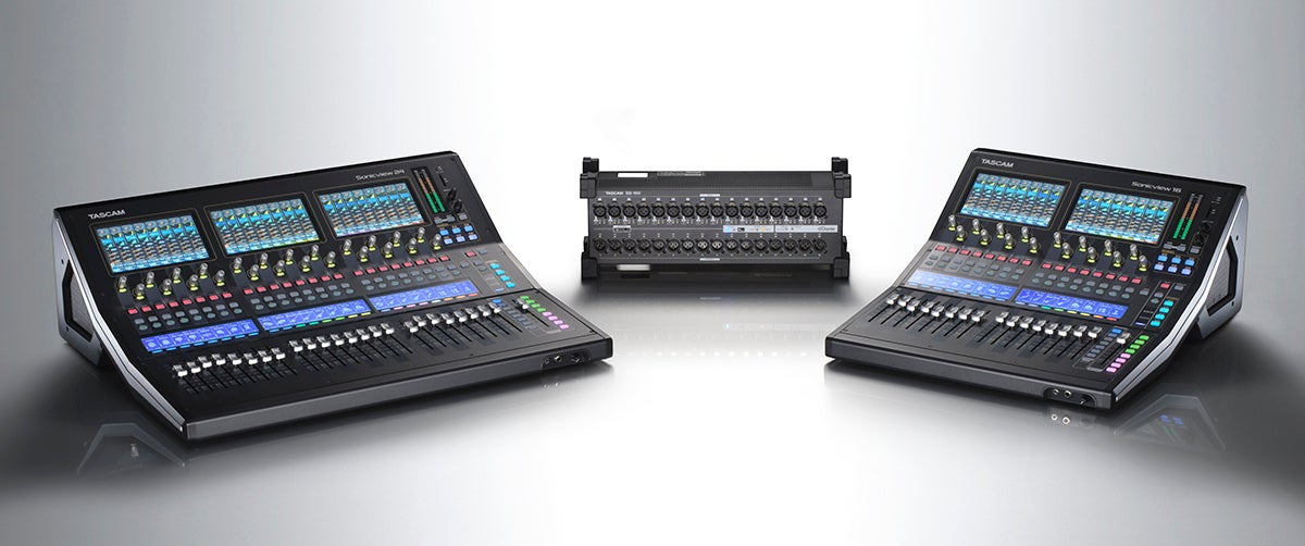 今年5月に発表しましたデジタルミキサー『TASCAM Sonicview 24』および『TASCAM Sonicview 16』は、96kHz動作、マルチカラータッチスクリーン搭載の次世代のデジタルミキサーです。50年を超えるTASCAMのノウハウと技術により新たに開発された高性能Class 1 HDIAマイクプリアンプを搭載、54bit float FPGAミキシングエンジンにより超低レイテンシーを達成し、クラスを超えた音質とスペックを実現しました。複数のカラータッチスクリーンによる直観的な操作性に加え、自由にアサインできる7レイヤーのカスタムフェーダーやDante I/O、USB I/O、GPIOなどの多彩なI/Oを標準装備、さらにデジタル入出力などの豊富なI/Oオプションカードや、『TASCAM Sonicview』のオーディオ部と同じハードウェア構成で同等の性能を確保したDanteステージボックス『SB-16D』との組み合わせによる拡張性と柔軟性を兼ね備えます。