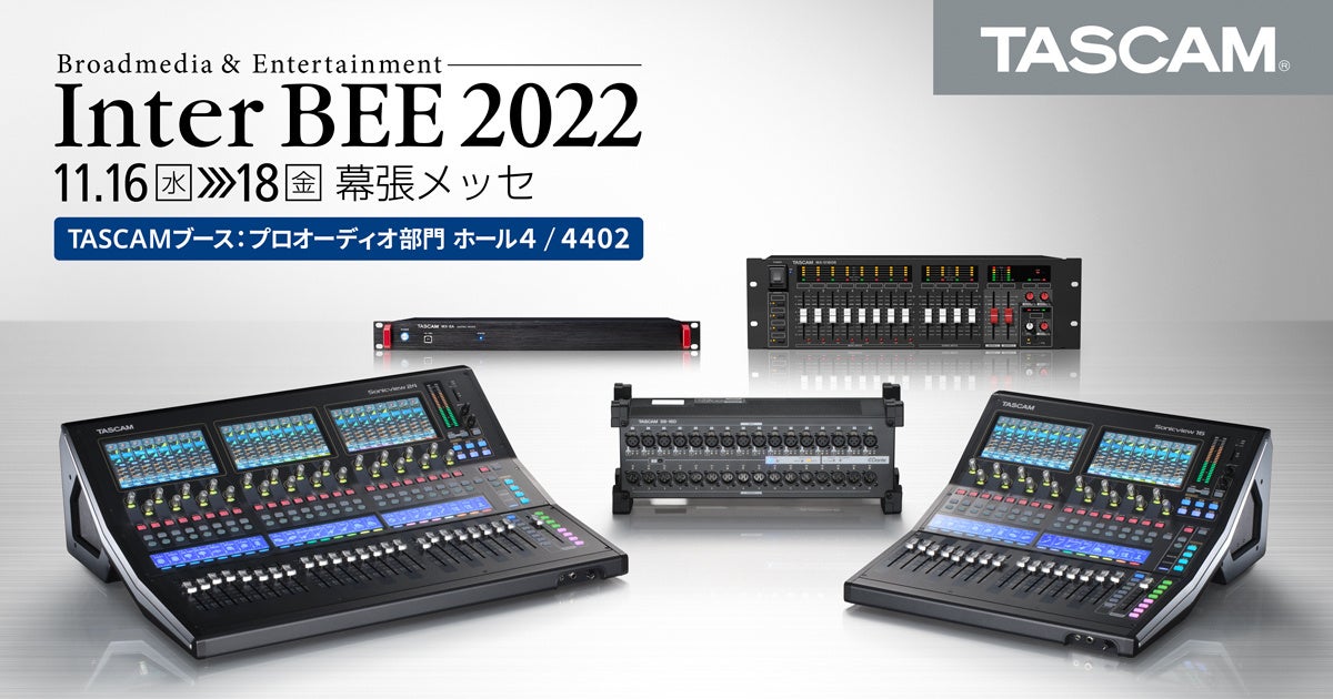 本年は、デジタルミキサーのソリューションに特化した展示を実施いたします。放送局からPA/SR市場など幅広い市場を対象とした新製品のデジタルミキサーTASCAM Sonicviewシリーズを中心に、先日10月19日に発表しましたJVC ケンウッド・公共産業システム社との共同開発による設備用デジタルミキサーの参考出品や関連するラックマウントレコーダー製品などの展示をいたします。