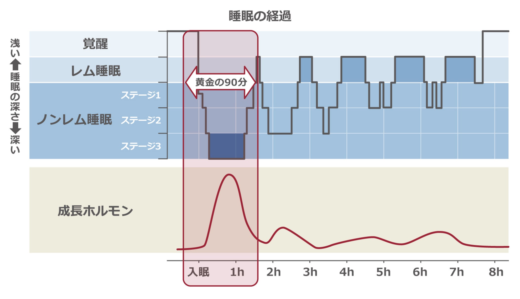 図1:睡眠の経過と睡眠の深さの関係 (出典:「スタンフォード式 最高の睡眠」(サンマーク出版)より改変)