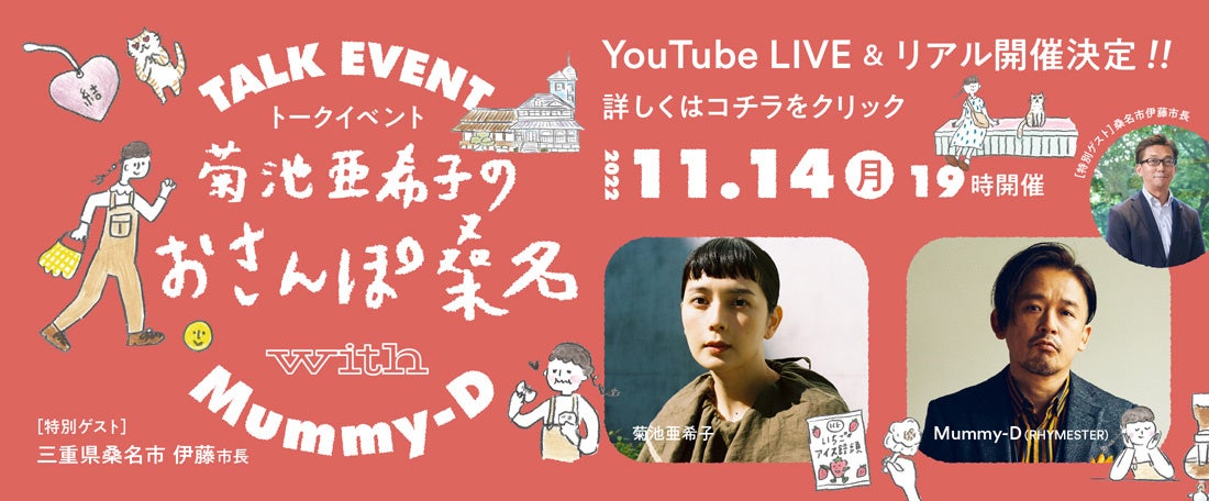 イベント名:トークイベント「菊池亜希子のおさんぽ桑名 with Mummy-D」YouTube LIVE配信