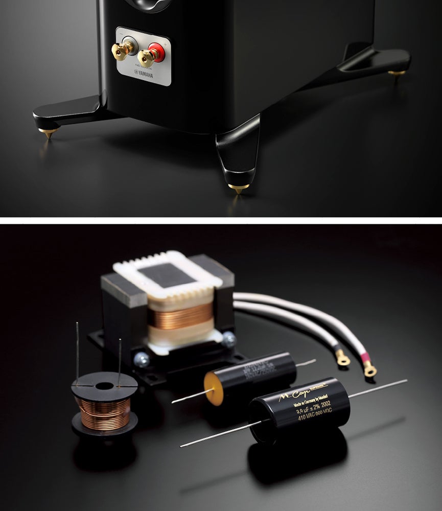 自然な聴き心地にこだわりスピーカーターミナルはシングルワイヤリングとし、指でしっかりホールドしやすく質感の高い真鍮削り出しのオリジナルパーツを採用しました。また内部のネットワーク回路には、音響用コンデンサーの最高峰として知られるドイツ ムンドルフ社製オーディオコンデンサー「MCap SUPREME Classic」など、信号伝送のロスを可能な限り排除する高級品を厳選し、さらに内部配線の全てに新世代の銅導体=PC-Triple C(ピーシー トリプルシー)を使用しています。