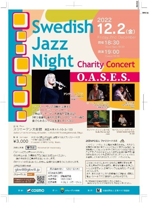 チャリティ・ジャズ・コンサート「Swedish Jazz Night」開催(協賛)のお知らせ