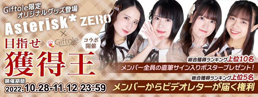 期間中、Asterisk*zeroオリジナルグッズを最も多く獲得いただいた総合獲得ランキング1~5位の方に、『メンバーからビデオレターが届く権利』をプレゼント!