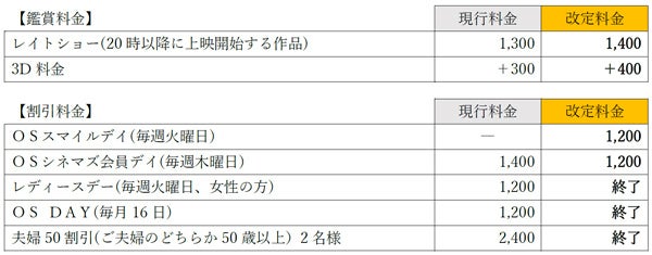 オーエス株式会社(本社:大阪市北区、取締役社長:高(※1)橋秀一郎)は、経営するシネマコンプレックス「OSシネマズ」において、2022年12月1日(木)より以下の通り新割引サービスを開始いたします。また、同時に一部の鑑賞料金を改定させていただくことになりました。