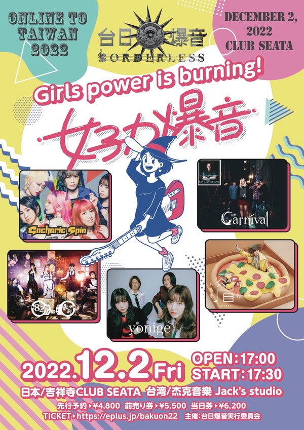 2017年から日本と台湾の両国で開催している「台日爆音BORDERLESS」は5年目を迎え、今年は「女子力爆音」をコンセプトに最強のガールズバンドが集結します。また6月に日本デビューを果たした台湾バンド「Carnival」をゲストに迎え3年ぶりに両国の音楽ファンが爆音で一つにつながります