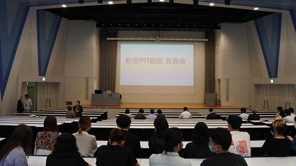 新宿活性化に繋げることを目的とした動画コンテストを実施。動画のテーマは ①SDG’s、②新宿の活性化、③新宿の文化 の3種類。学生はチームごとにテーマを選んで動画を制作し、最終審査・発表会で、スタジオアルタ、新宿観光振興協会専務理事など関係者の前でプレゼンテーションを行いました。