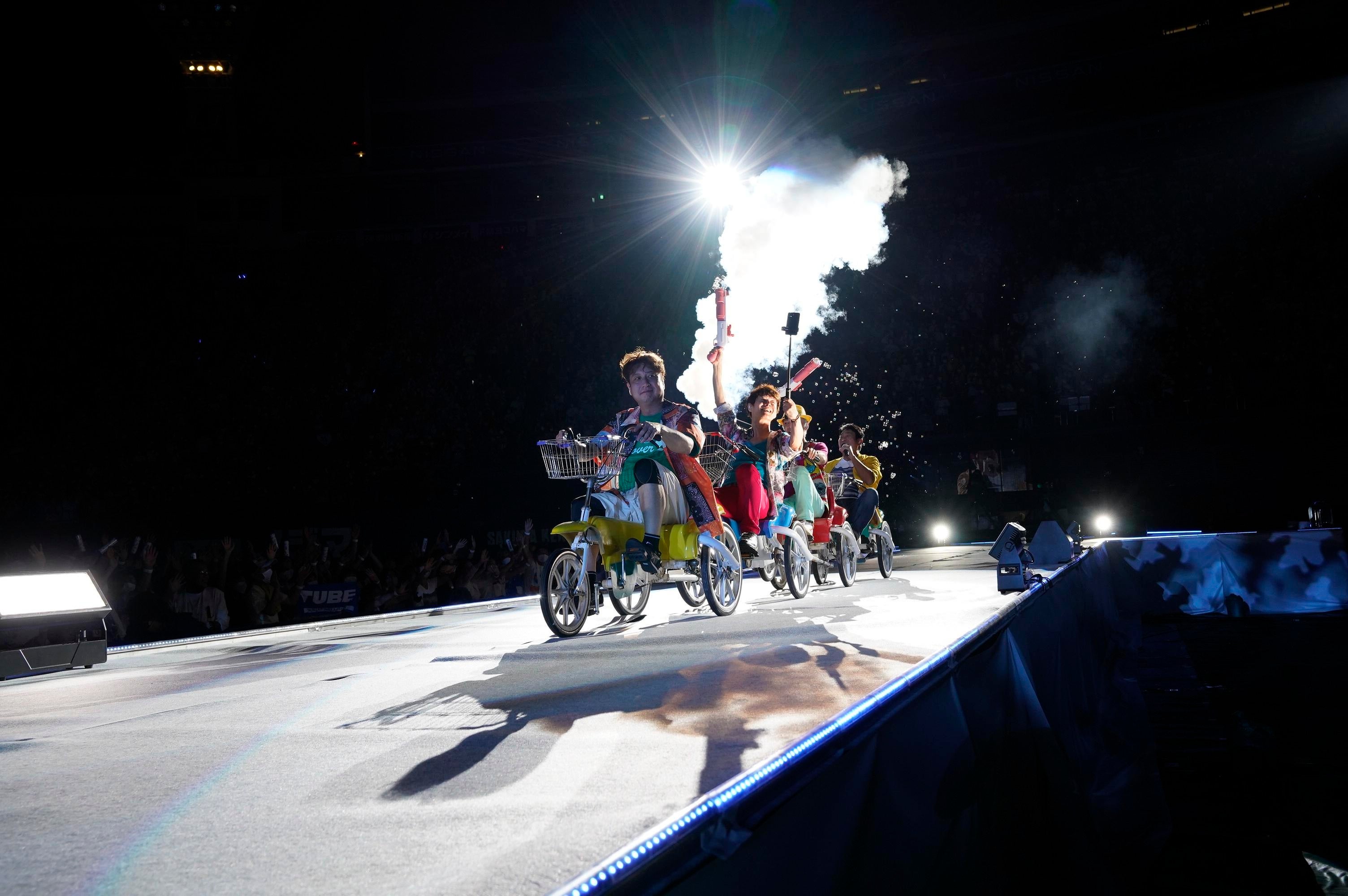 公式TikTokの企画応募者から選ばれた2組との「シーズン・イン・ザ・サン」セッションを挟んで、4人は再び360度を見渡せるセンターステージへ。スツールに座ってプレイされたのは日本の祭りをイメージした「夏祭り」、リリースされたばかりの63枚目のシングル「夏立ちぬ」、そして壮大なバラード「Remember Me」。汗ばんだ素肌を、ハマの夜風が優しくぬぐう。