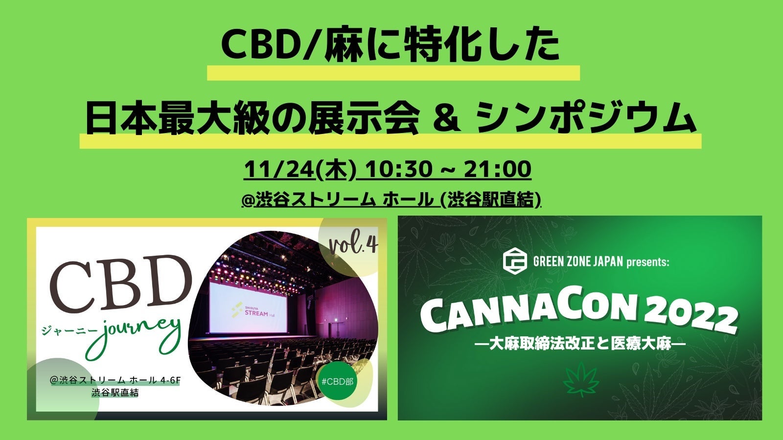 CBDジャーニーvol.4、そして、Cannacon(カナコン)vol.1も渋谷で開催されます。過去最大規模の会場に、50社以上に及ぶ日本の主要CBD企業が集結致します。国内のCBDビジネスが網羅できるうえ、講演では医療、産業、法律などあらゆる専門家が集結した講演があります。
