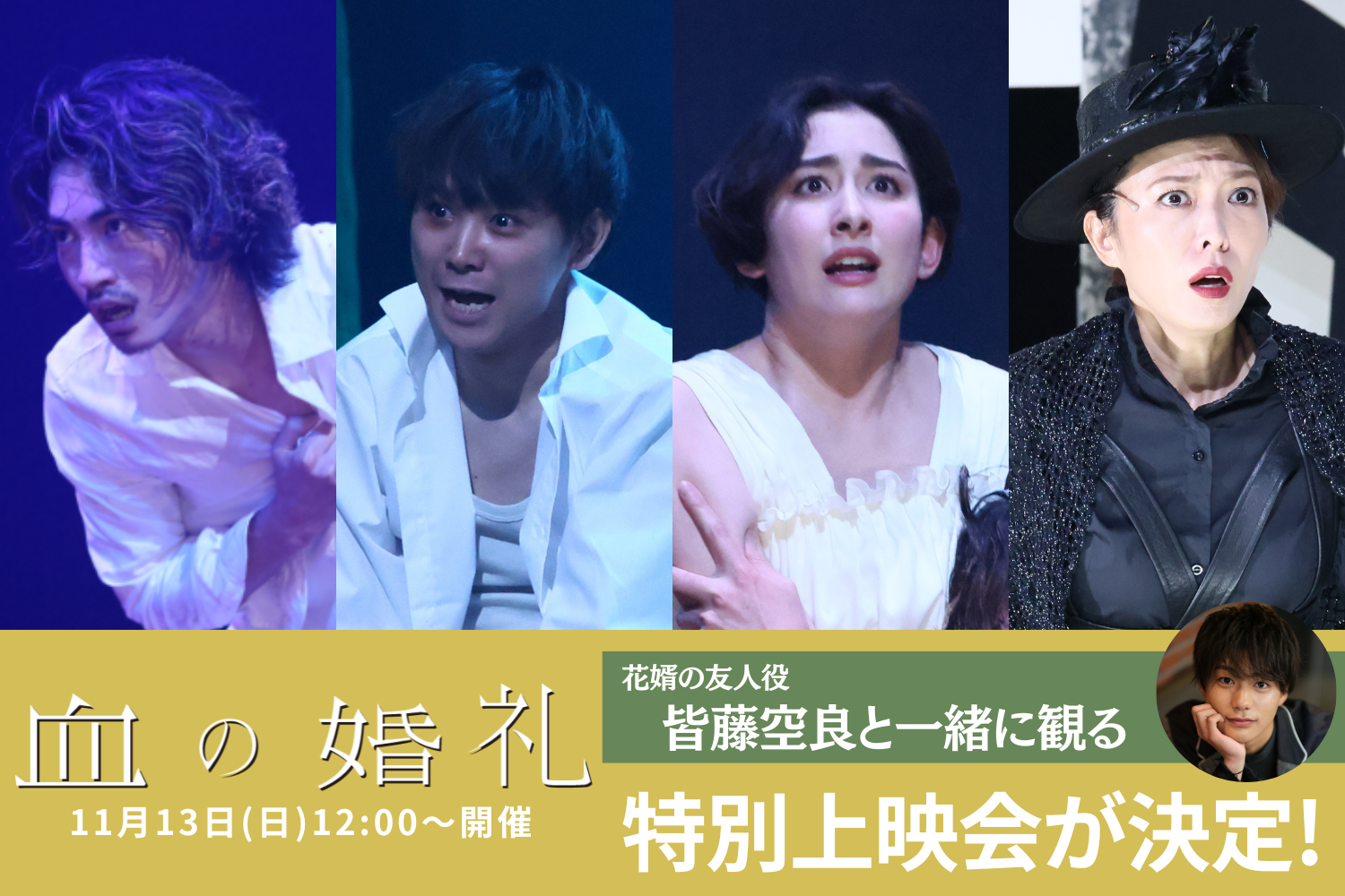 先月大千穐楽を迎えた舞台『血の婚礼』の上演映像を、出演者の皆藤空良さん(花婿の友人役)と一緒に観る特別上映会のイベントが決定いたしました!舞台の裏話を語るアフタートークもあり。ぜひ、ご参加ください!