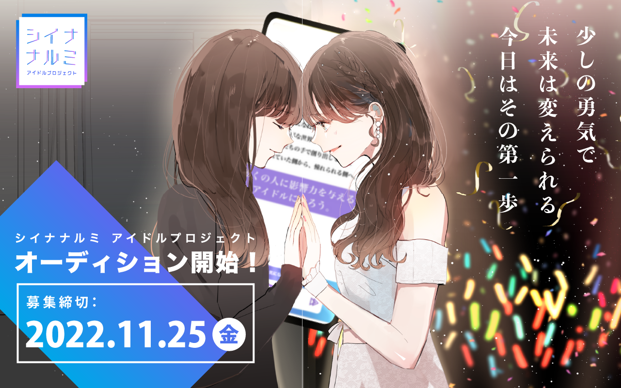 「辛い経験をした人が今度は誰かを救える自分に。―多くの人に影響を与えるアイドルになろう―」をキャッチコピーとして、11月1日から募集開始。シイナナルミ自身はアイドル業界のおじさん達をライバルとして、アイドルになる女の子が安心して未来を掴める環境を作ると宣言。