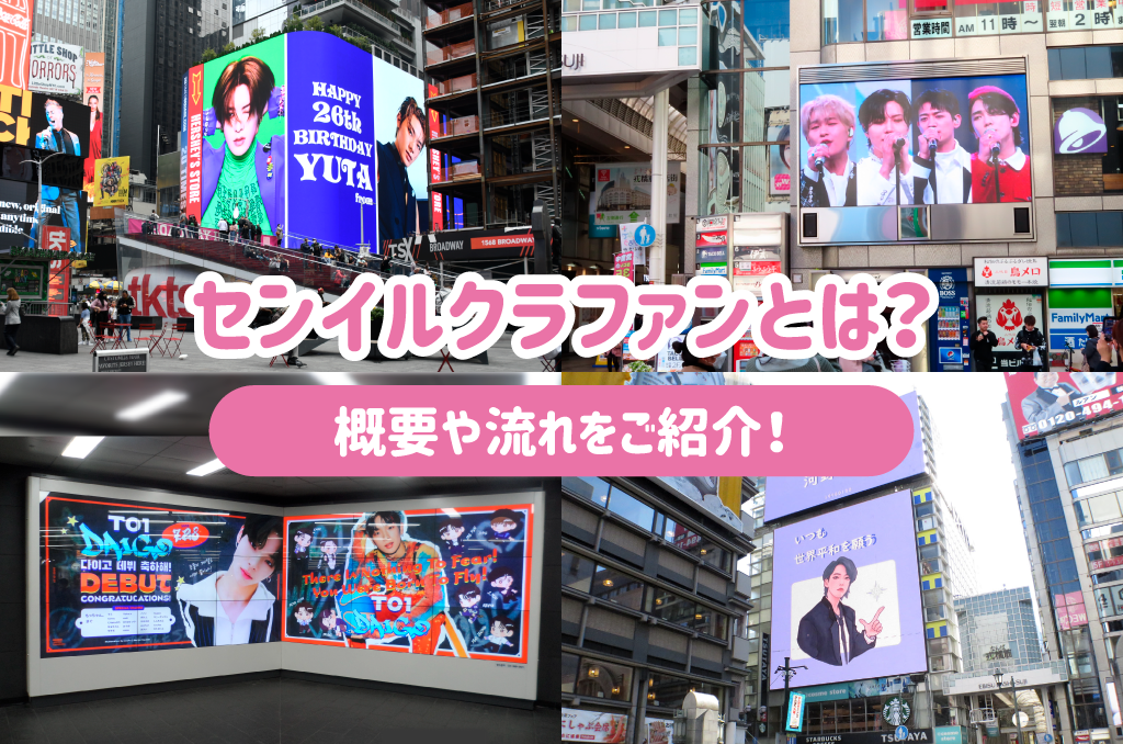 「センイル広告」とは韓国発祥の独特な広告文化で、自分の推しアイドルや俳優の誕生日や記念日に、お祝いや応援するためだけにファンが自発的に行う非営利目的の広告のことです。