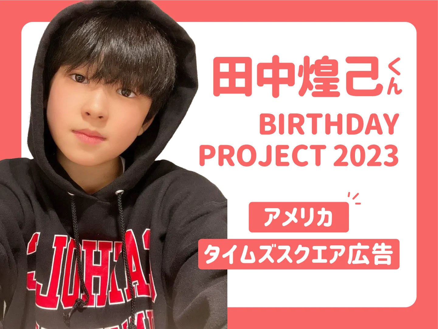 ●田中煌己君BIRTHDAY PROJECT 2023(達成金額(2022.11.02時点):616,000円)