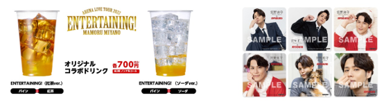 11月16日(水)から1月15日(日)までの期間中、全国の対象カラオケ店舗では、ライブタイトルである「ENTERTAINING!」をイメージした全2種のオリジナルコラボドリンクを展開!特典のオリジナルコースター(全6種)を、1点のご注文につき1枚プレゼントします。