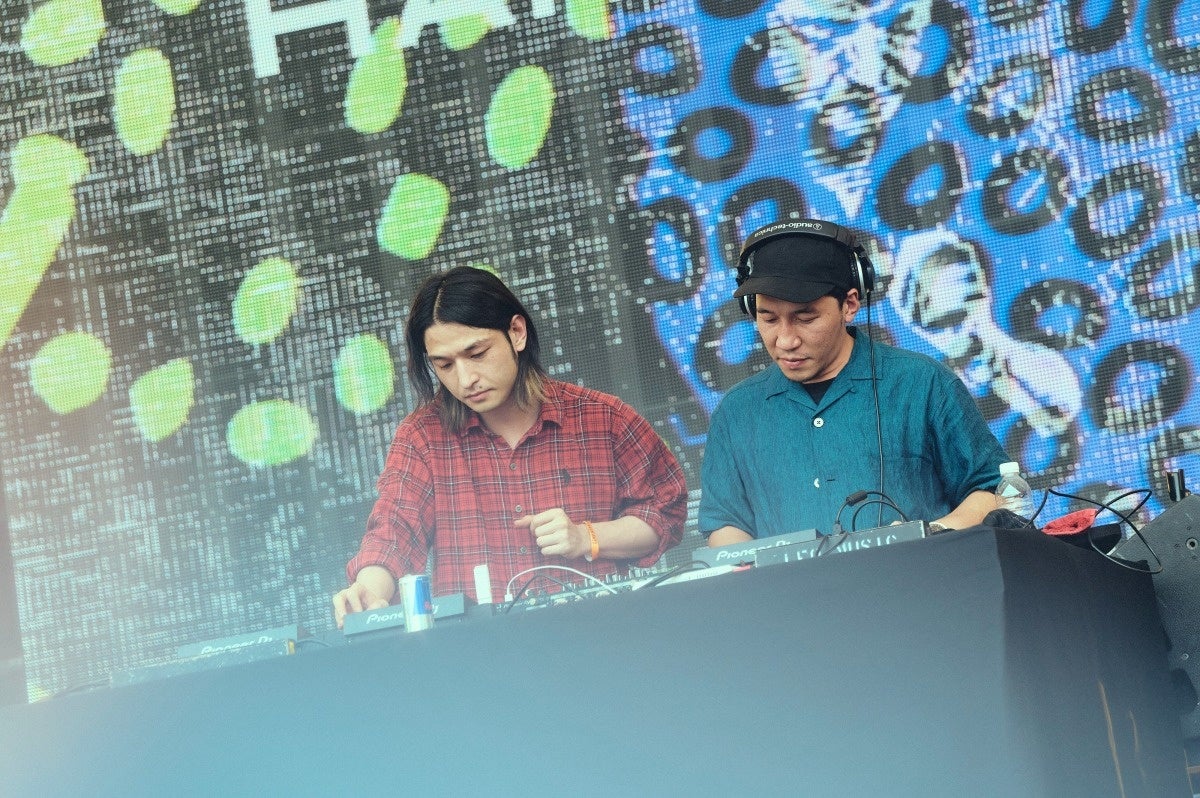 各ブースが来場客で賑わいだした昼過ぎ、ハウス/ディスコの新しいムーブメントを開拓するYOSA & TAARが登場。のっけからVan Halen「Jump」をドロップし意外なロックセットを展開しました。ハーレーライダーの心を掴みつつ得意とするハウス、ディスコへとグルーヴを繋ぎ、往年の名曲からヒット曲のリミックスまで多幸感ある選曲で観客を魅了。ラストはテッパンの「Perfect Fire」で会場が一体感に包まれました。