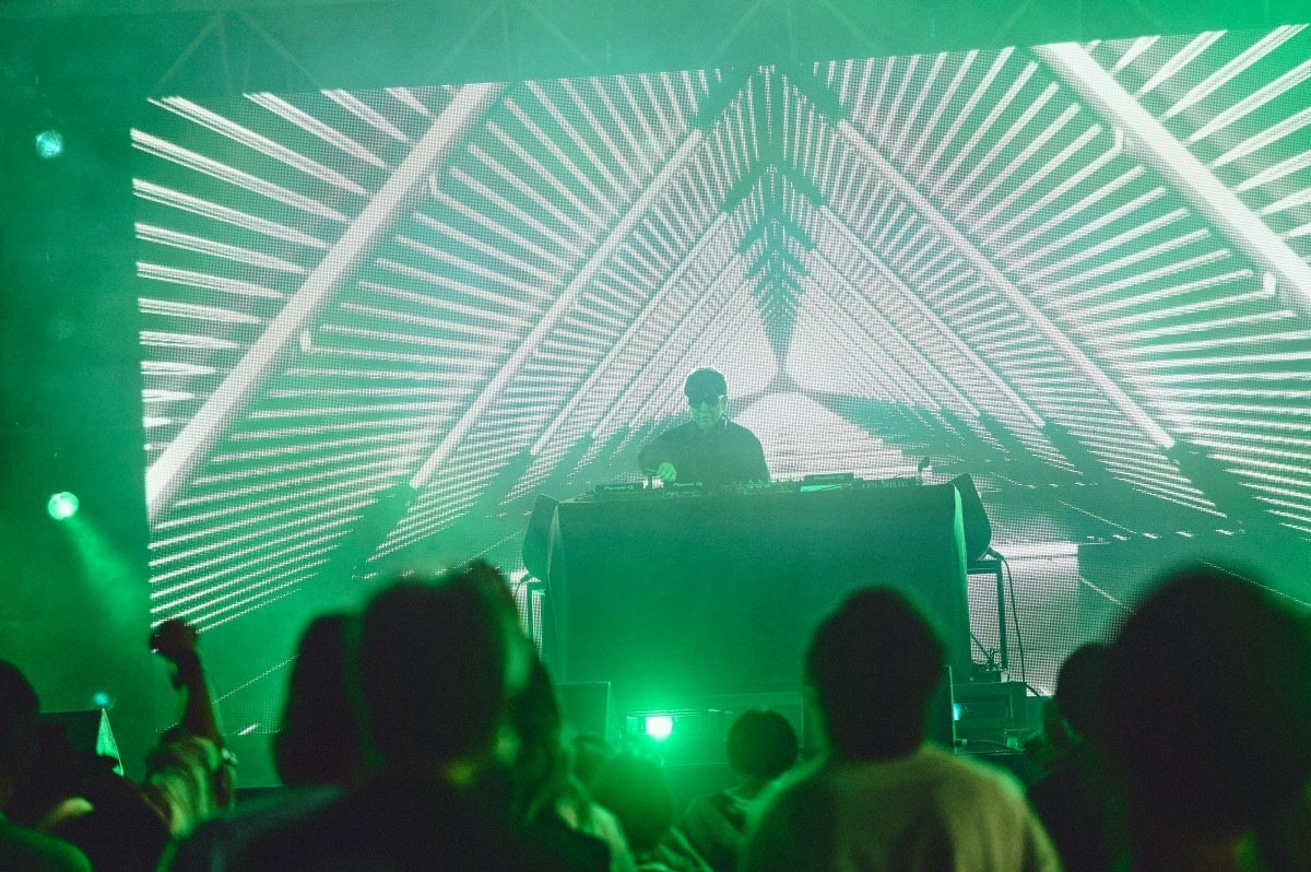 日も沈み富士の麓に夜が訪れる頃、シーンの最先端を走り続けるMONDO GROSSO / SHINICHI OSAWAが登場。エキゾチックなサウンドに自身の楽曲を織り交ぜつつセットを展開し、RHYME SOとしても大沢と共に活動するRHYMEがシンガーとしてステージに現れると、観客はますますヒートアップ。「POSEABLE」などRHYME SOの楽曲から、RHYMEが去った後も「LIFE」「ラビリンス」といったMONDO GROSSOの楽曲を繋ぎ、没入感たっぷりのライブセットを披露しました。