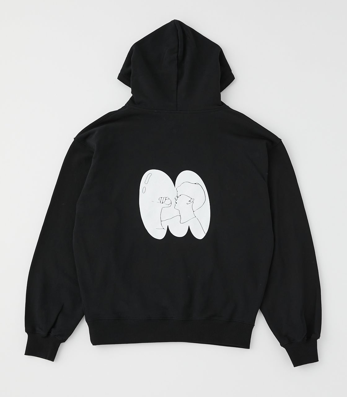 フロントはシンプルロゴを刺繍で配置し、バックにはご本人直筆イラストを