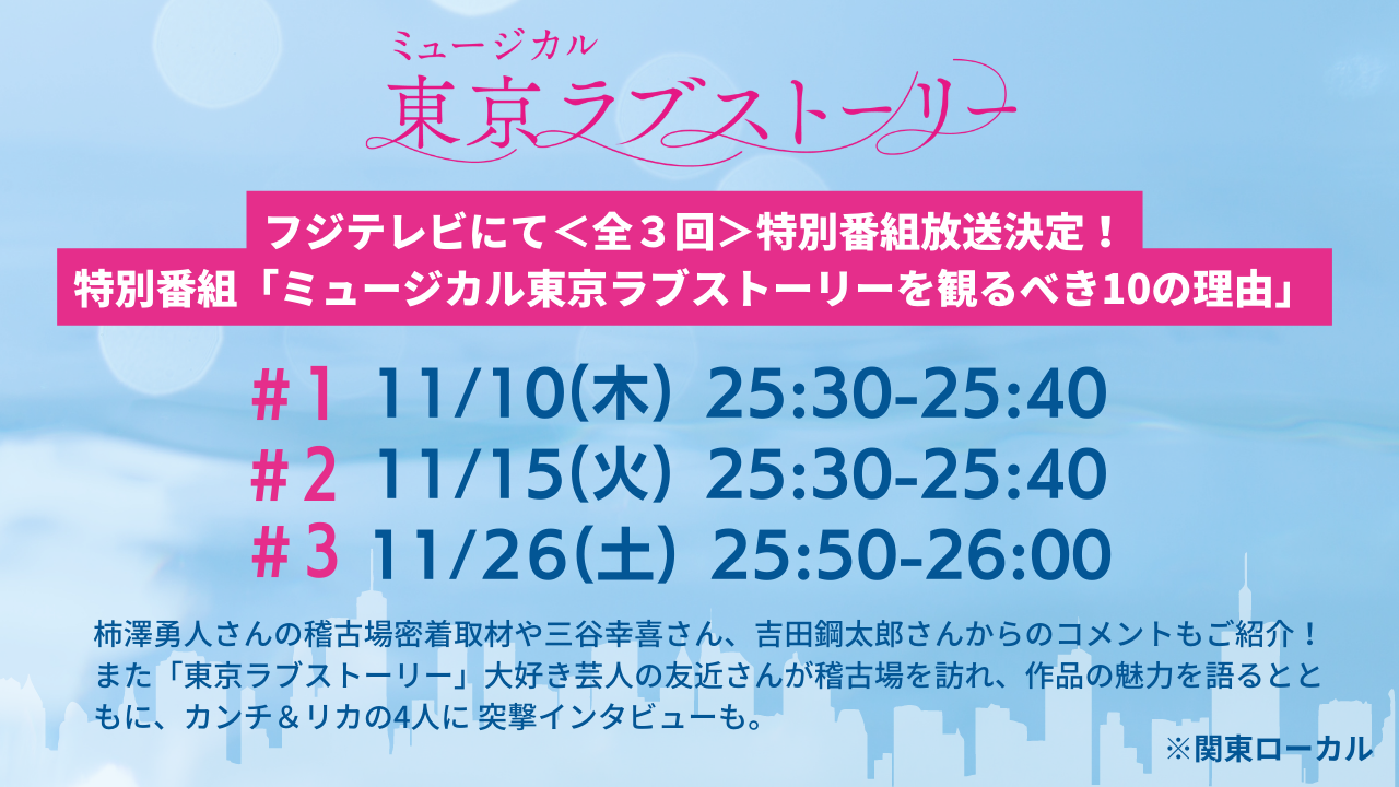 - 特別番組「ミュージカル東京ラブストーリーを観るべき10の理由」放送決定!