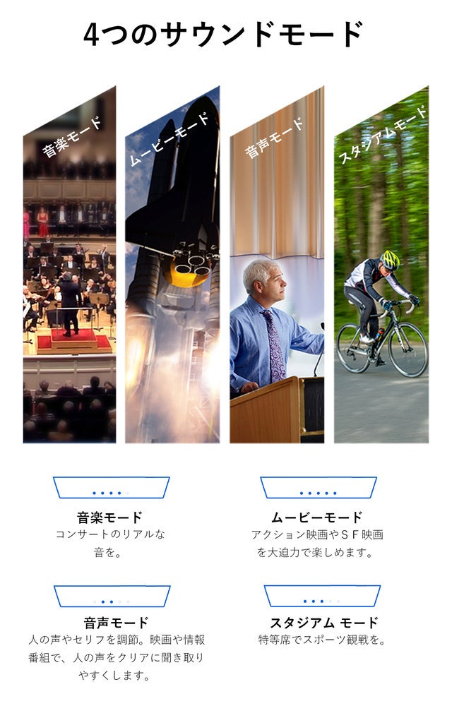 サウンドモード:ムービー、音楽、音声、スタジアム