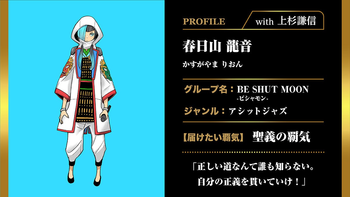 プロジェクトの設定は、世界的に継続しているコロナ、ロシアウクライナ侵攻、30年ぶりの円安と物価上昇など、元気のない世の中が当たり前になりつつある、そんな日本の状況を憂いた神様が最も“覇気”に満ちていた戦国乱世から日本全国の戦国武将の魂を現世に解き放つ・・・、そして現世に復活した武将の熱い魂が、歌い手の少女に降臨し、音楽に載せて各武将独自の“覇気”を日本全国津々浦々に届けていくというものです(例:信長『できないって誰が決めたんだ!』、家康『準備しておけば必ずチャンスは来る!』など)。