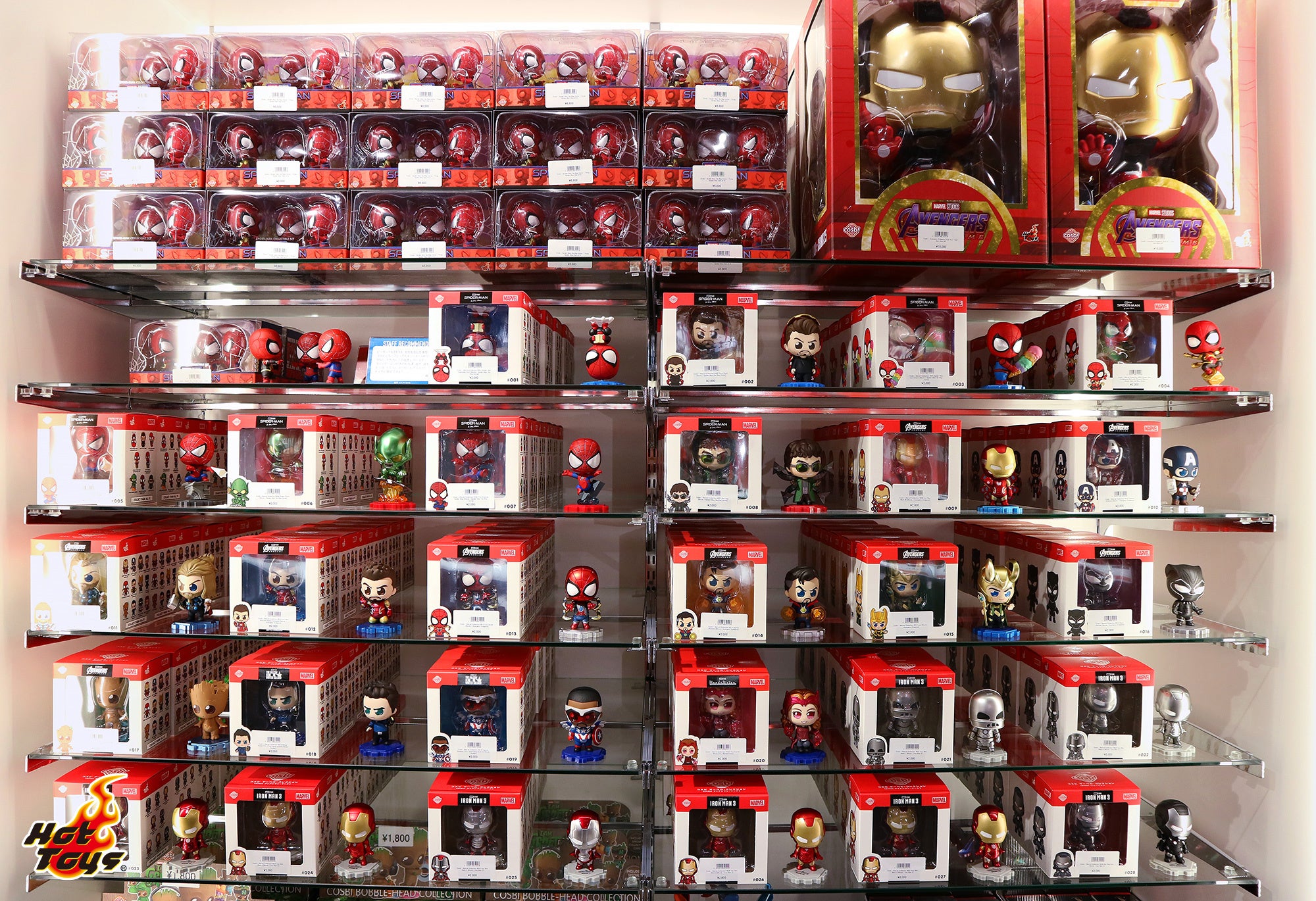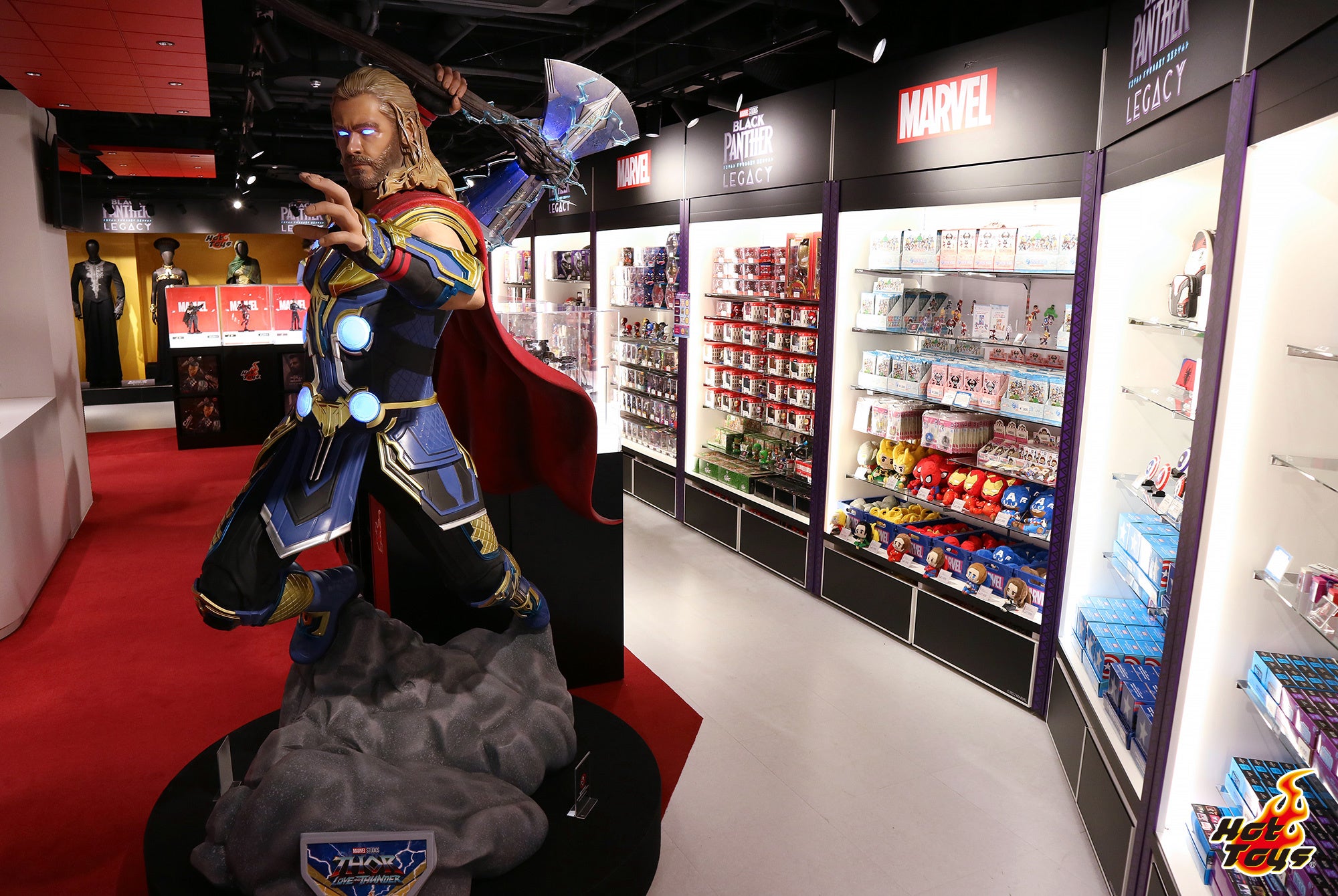 他にもデフォルメフィギュア「コスビ」シリーズなど、「マーベル」の関連アイテムが幅広いラインナップで展開されています。また、店内には『ソー:ラブ&サンダー』に登場したソーの等身大フィギュアも展示されています。