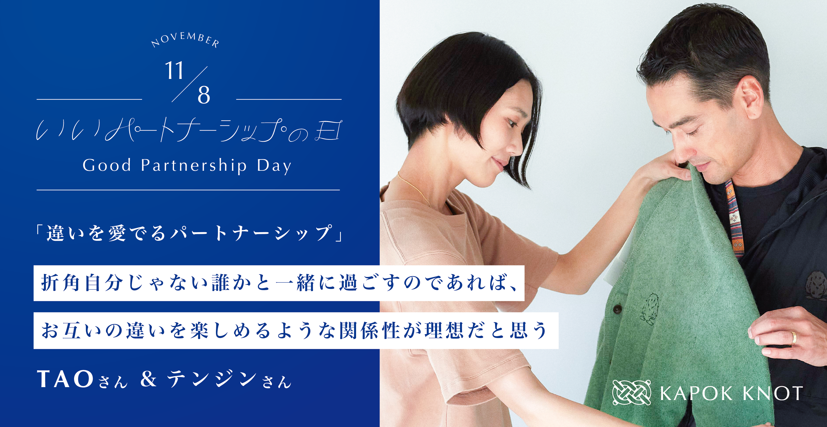 11月23日(水)〜12月4日(日)の間、KAPOK KNOT MIYASHITA PARK STOREにてお買い上げいただいた方お一人様につき、「いいパートナーシップの日」にちなんで1180円を「多種多様なパートナーシップ」のあり方を実践・促進する団体に寄付します。