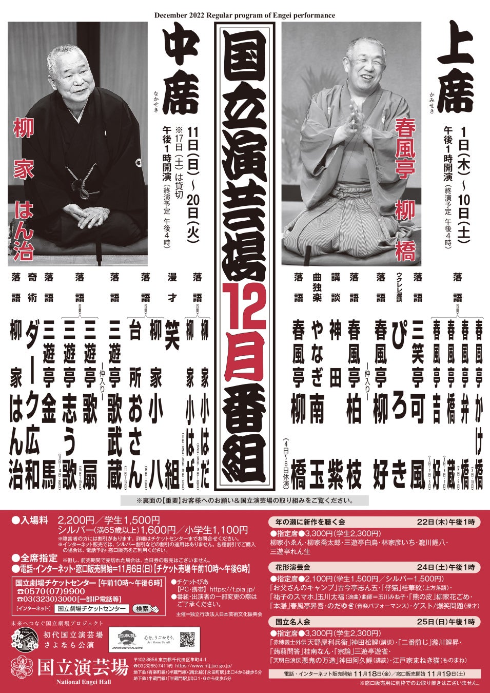 『国立演芸場令和4年12月上席公演』