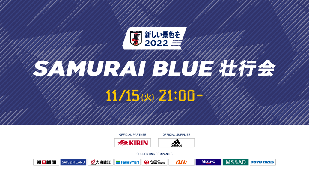 壮行会はJFATV(YouTube)、SAMURAI BLUE公式Twitter、SAMURAI BLUE公式TikTok、バーチャル渋谷(予定)でライブ配信し、どなたでも無料で視聴いただけます。