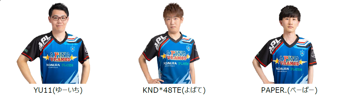 『APINA VRAMeS』はThe 10th KONAMI Arcade Championshipで優勝しどの分野も幅広く対応できるYU11選手、高難易度に特化したKND*48TE選手、中難易度に強みを持つPAPER.選手を擁した隙のないチームとなっています。