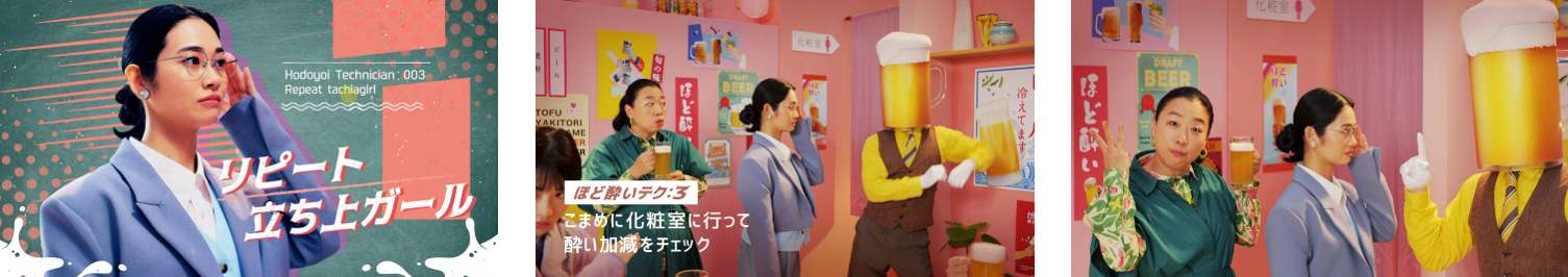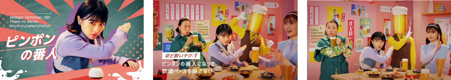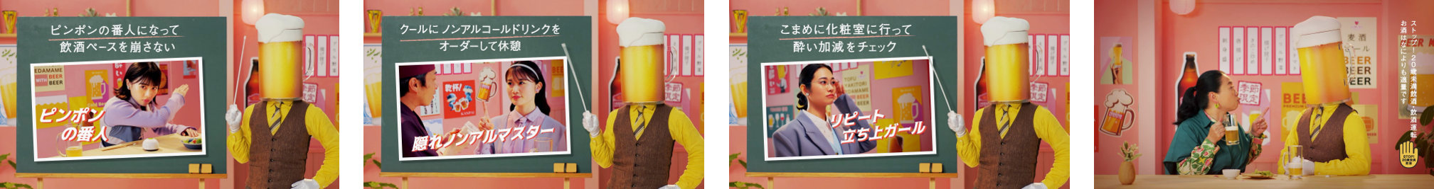 WEB動画『ほど酔い女子大「ほど酔いテクニシャン」篇』では、「ほど酔い女子大~秋の特別講座~」と題して、ビール酒造組合の会員社であるビールメーカー5社の女性社員から募集・厳選した“ほど酔いテクニック”を“ほど酔いテクニシャン”の3人が特別講師となっていとうさんに紹介する動画を公開します。