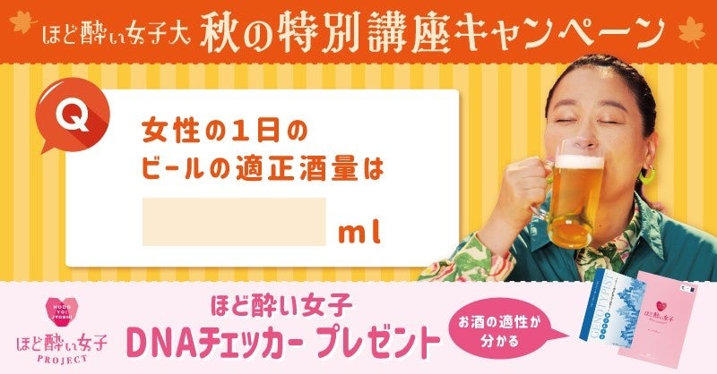 お酒とのおいしい付き合い方がDNAで分かる日本初の「ほど酔い女子DNAチェッカー」が当たる「ほど酔い女子大秋の特別講座キャンペーン」もスタート!