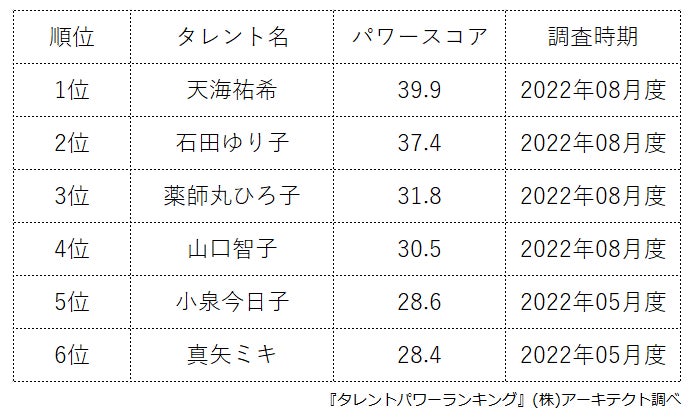 本ランキングは、2022年8月度に実施したタレント調査データ(一部過去実施データ)を利用し、タイトルに応じてランキング形式でまとめたものです。