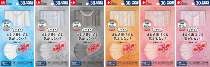 「ふわるんマスク」は、2021年11月に発売した、耳が痛くなりにくい特殊なゴムを使用したマスクです。体温により伸びる特殊な耳ゴムを採用。温かくなると形状がなじみ、しなやかな触感に変化し、時間が経つごとに顔になじむフィット感があるので、柔らかな着け心地が人気です。