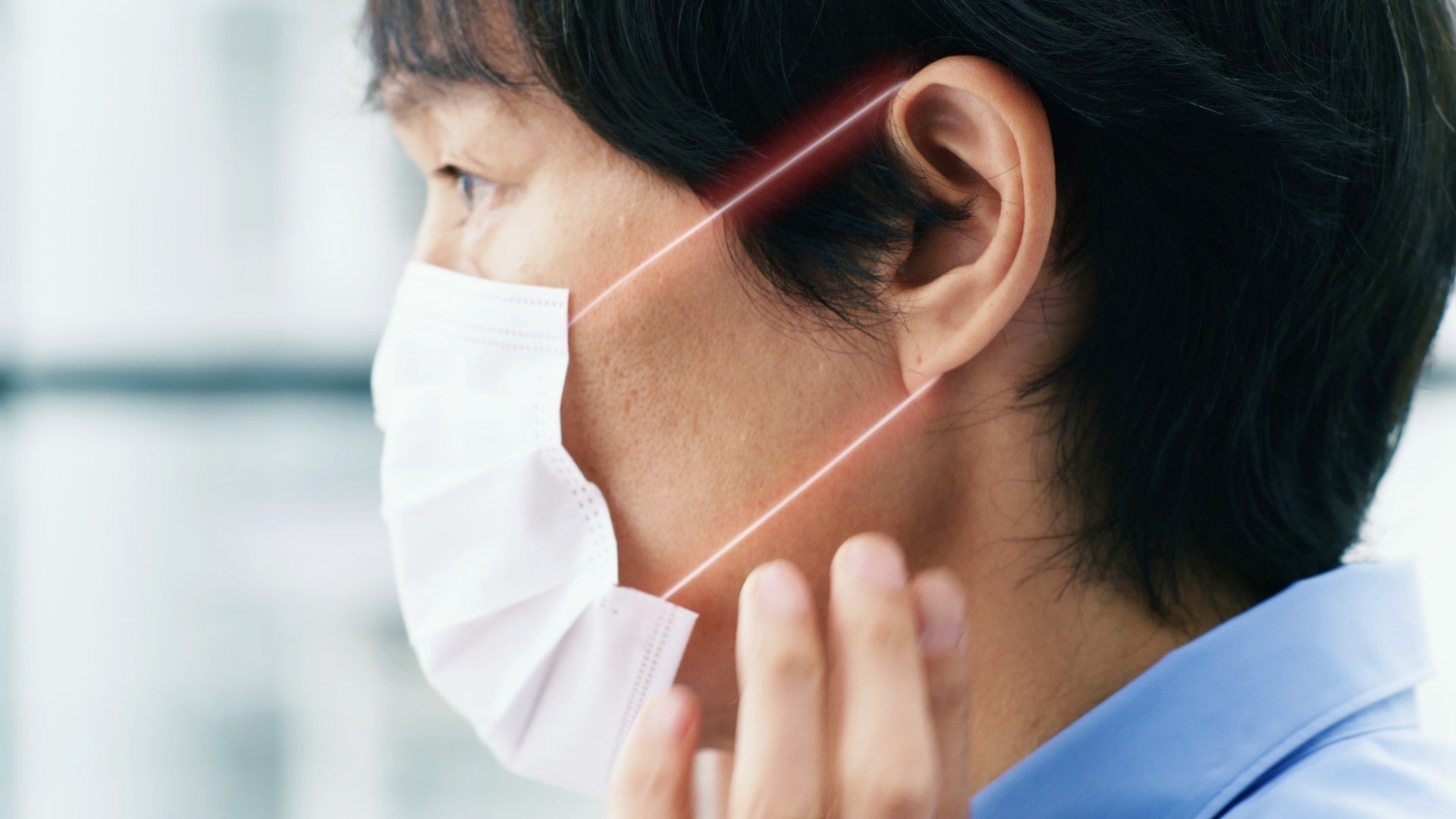 両方です。最初は「驚き」ですけれども、そこからずっとこれが持続するのが、うわっ、すごいなと思いました。着けた瞬間の心地よさというよりは、「ああ、何の意識もしてない」とか、「まったくマスクをしている感覚を忘れている」みたいな、長時間つけていることの「驚き」はあります。これは意外と(耳ゴムの)見た目が細いので、逆に耳が痛そうだと思われる方もたくさんいらっしゃると思います。でも、真逆で、この細さがまったく痛くないといいますか、細いからこそ温度をしっかり感知しているということなんでしょう。見た目が痛そうに思われる方は、ぜひ試してもらいたいです。