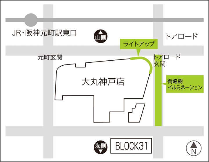 場所:大丸神戸店東側 明石町筋、大丸神戸店 トアロード玄関側外壁