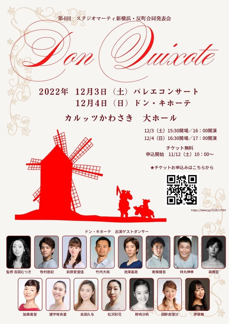 2022年12月4日(日) 16:00ロビー開場/16:30客席開場/17:00開演 「ドン・キホーテ全幕」