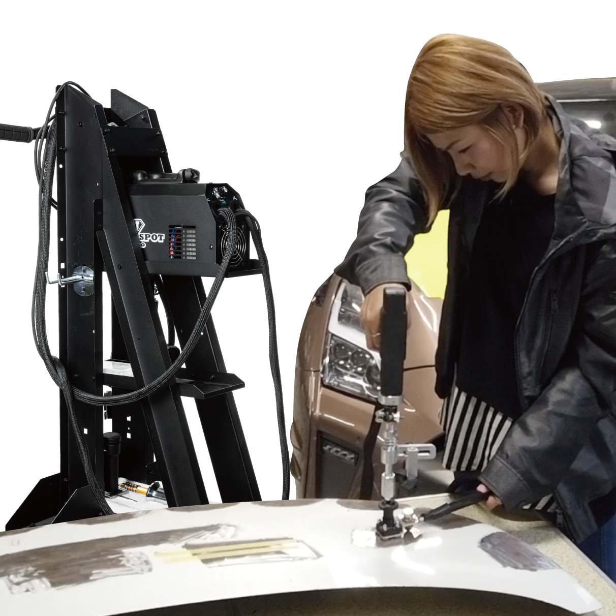 車体のへこみを修復する小型スタッド溶接機「ウルトラスポットNANO」。
