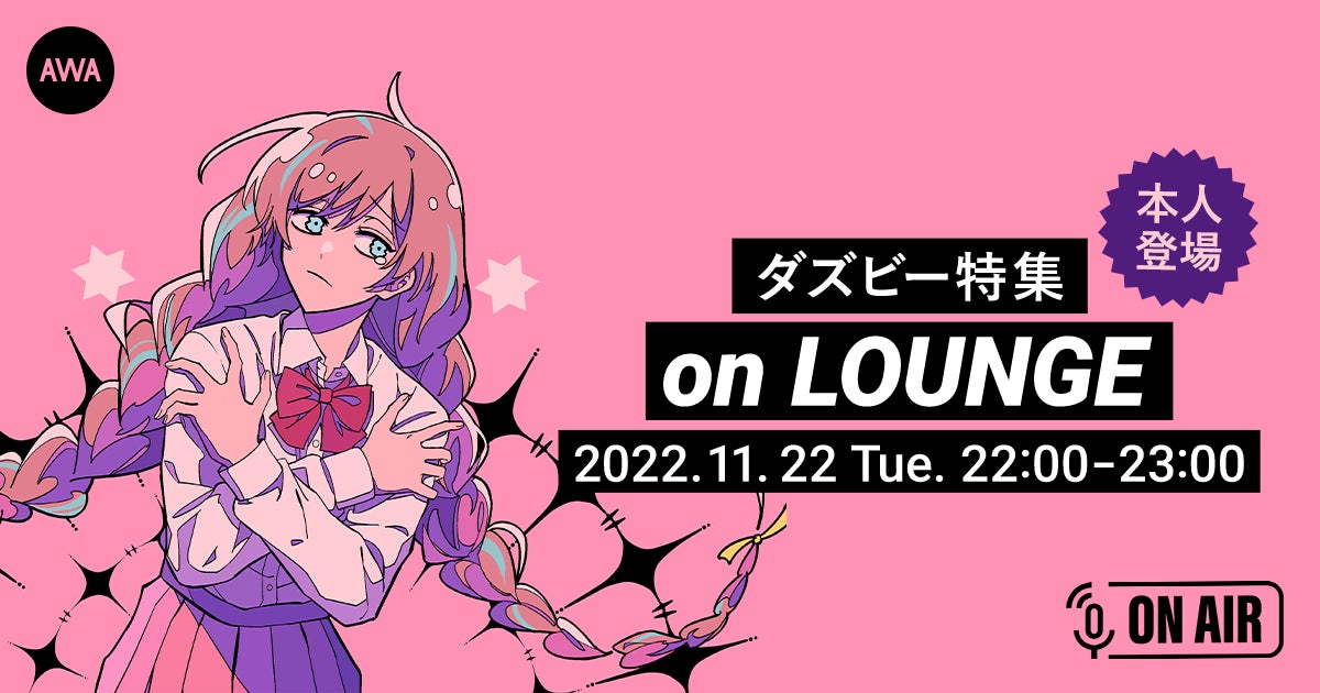 今回のイベントは、3rdオリジナルデジタルシングル「愛じゃない」のリリースを記念して開催されるもので、最新曲はもちろん、これまでの楽曲も一挙オンエアいたします。本イベントには、リアルタイムで本人が音声とチャットで参加し、参加者からのチャットでの質問に答えてくれます。ユーザーからのリクエストも受け付けます。LOUNGEは、どなたでも参加することができ、AWAアプリを事前にダウンロードしていれば、リクエストやアーティストとの交流など、よりお楽しみいただけます。ぜひ、DAZBEE(ダズビー)のAWAラウンジをお楽しみください。