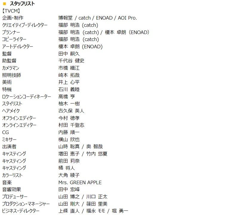 - CM楽曲は、中高生を中心に幅広い層から支持を集めるMrs. GREEN APPLEの「僕のこと」をオーケストラアレンジで起用。また、バンドとして初めてCMにカメオ出演し、エールを送っています!