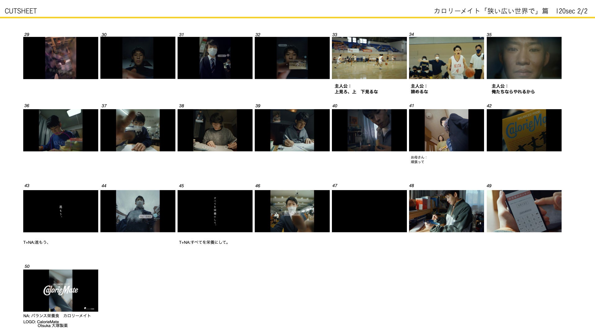カロリーメイトCM 『狭い広い世界で』篇120秒 :(URL https://youtu.be/yMMmN5eJcT0)
