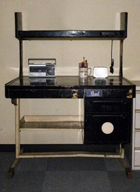 「初期作品の数々を書き上げた学習机」