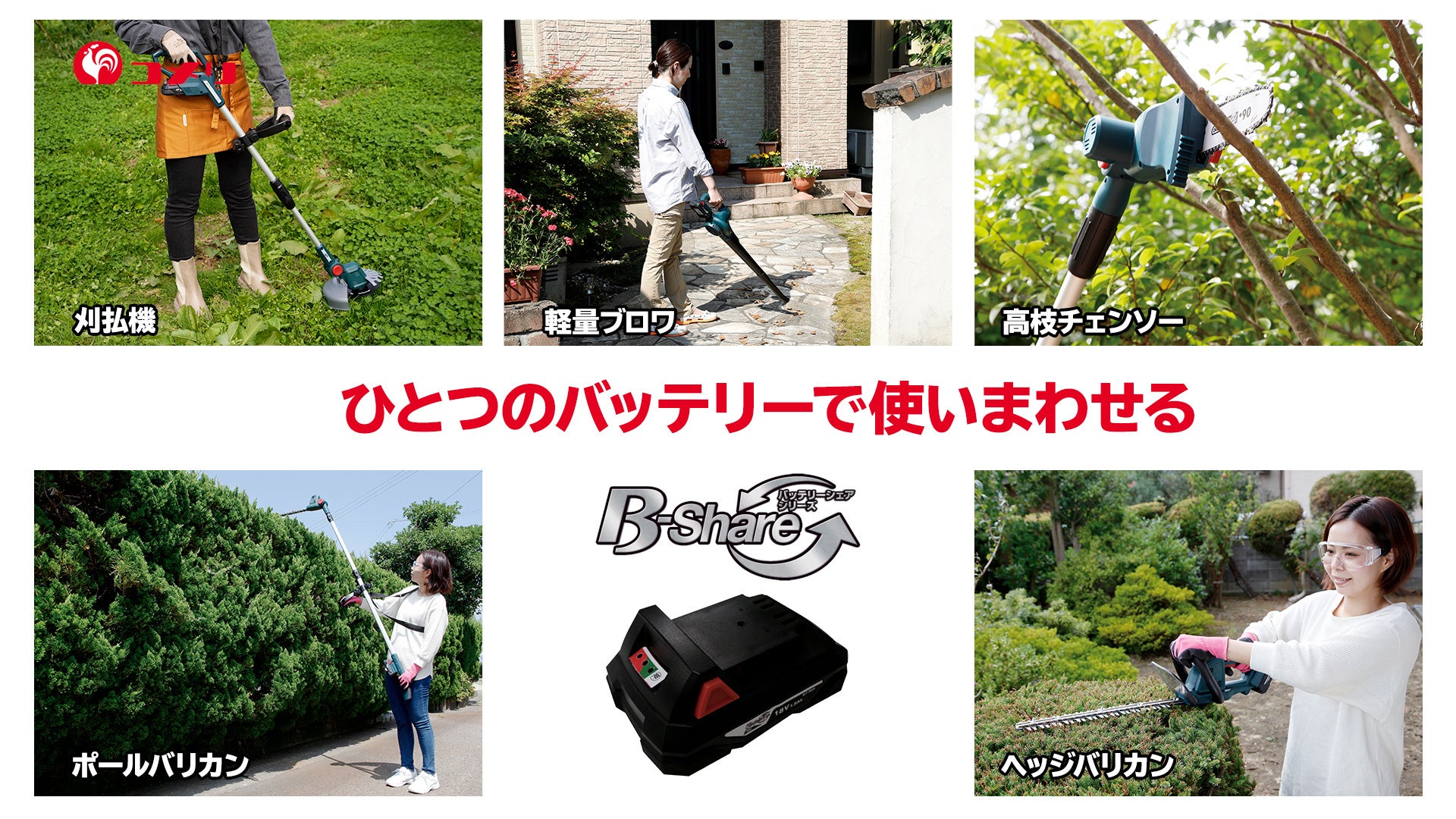 タイトル:片手でラクラク使える!超軽量のチェーンソーがデビュー大人気のコメリオリジナルブランド「B-Share」シリーズから「18V 充電式ハンディチェーンソー」が新登場!