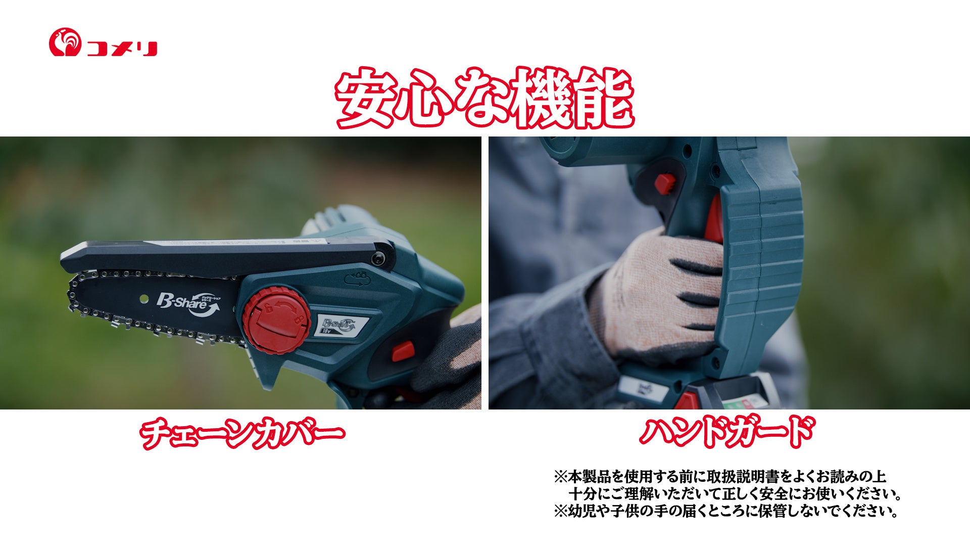 タイトル:片手でラクラク使える!超軽量のチェーンソーがデビュー大人気のコメリオリジナルブランド「B-Share」シリーズから「18V 充電式ハンディチェーンソー」が新登場!