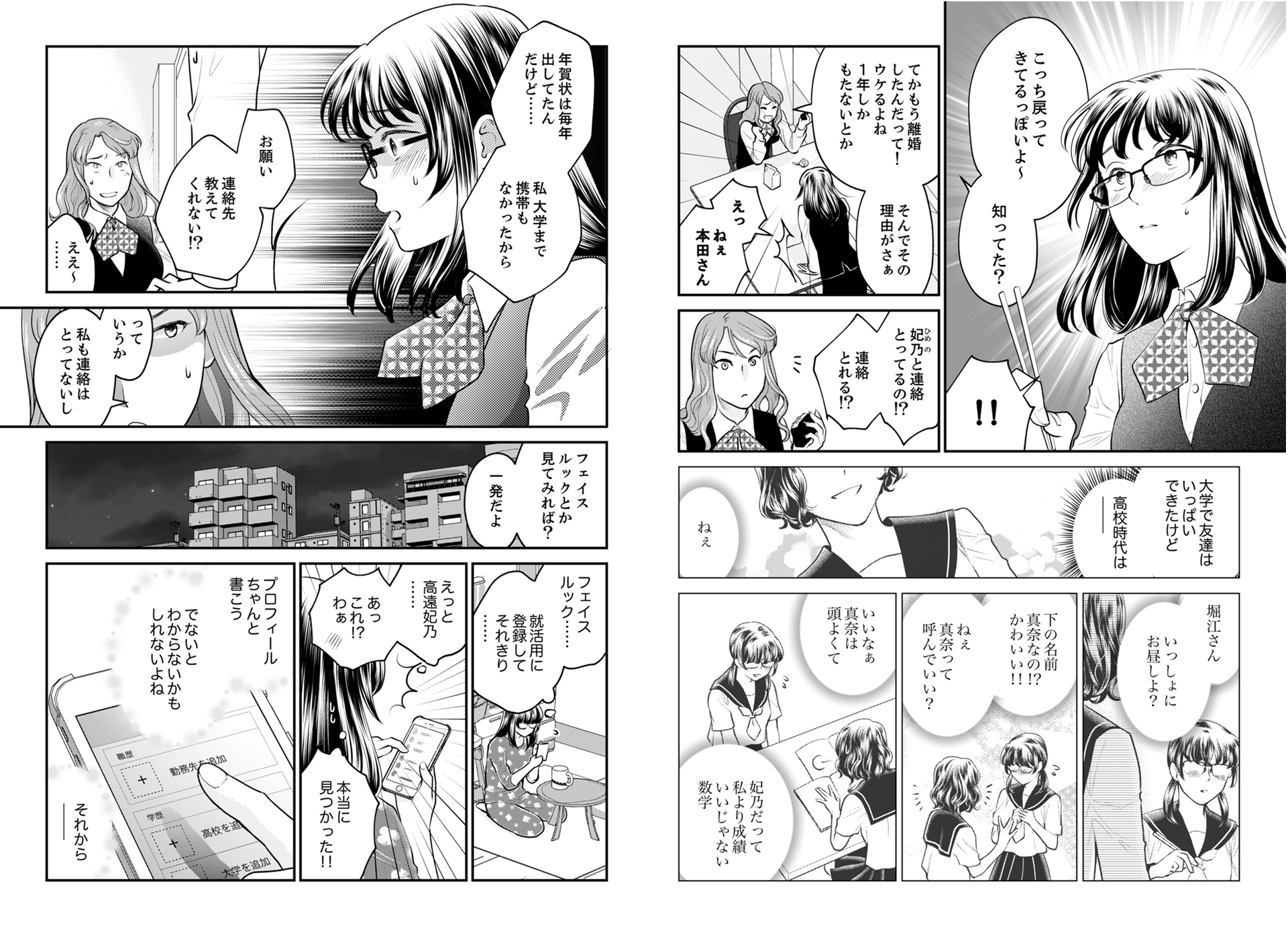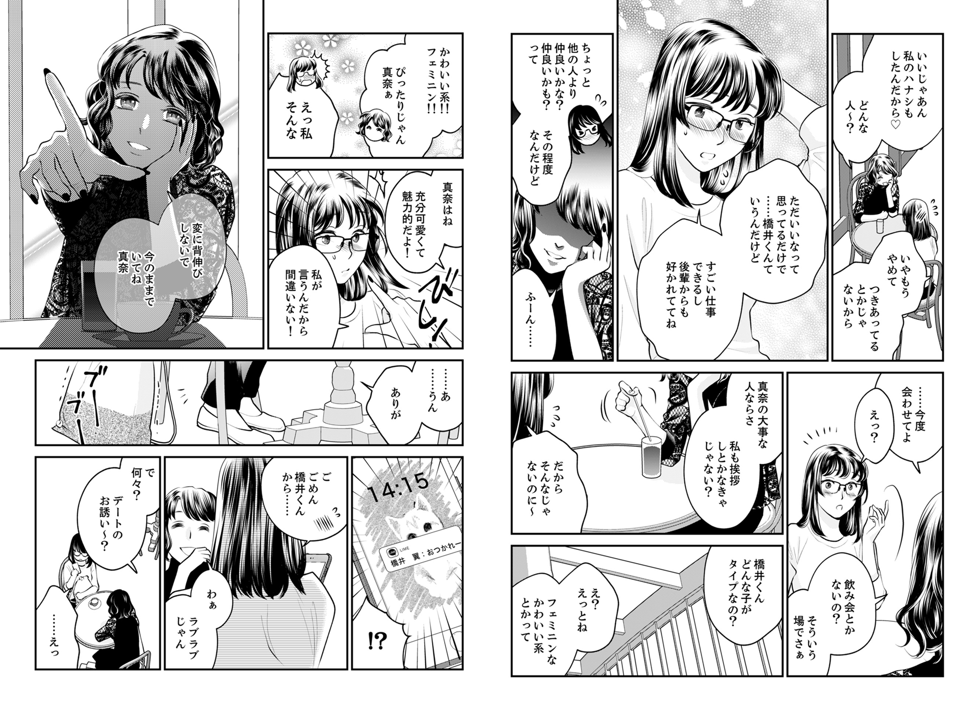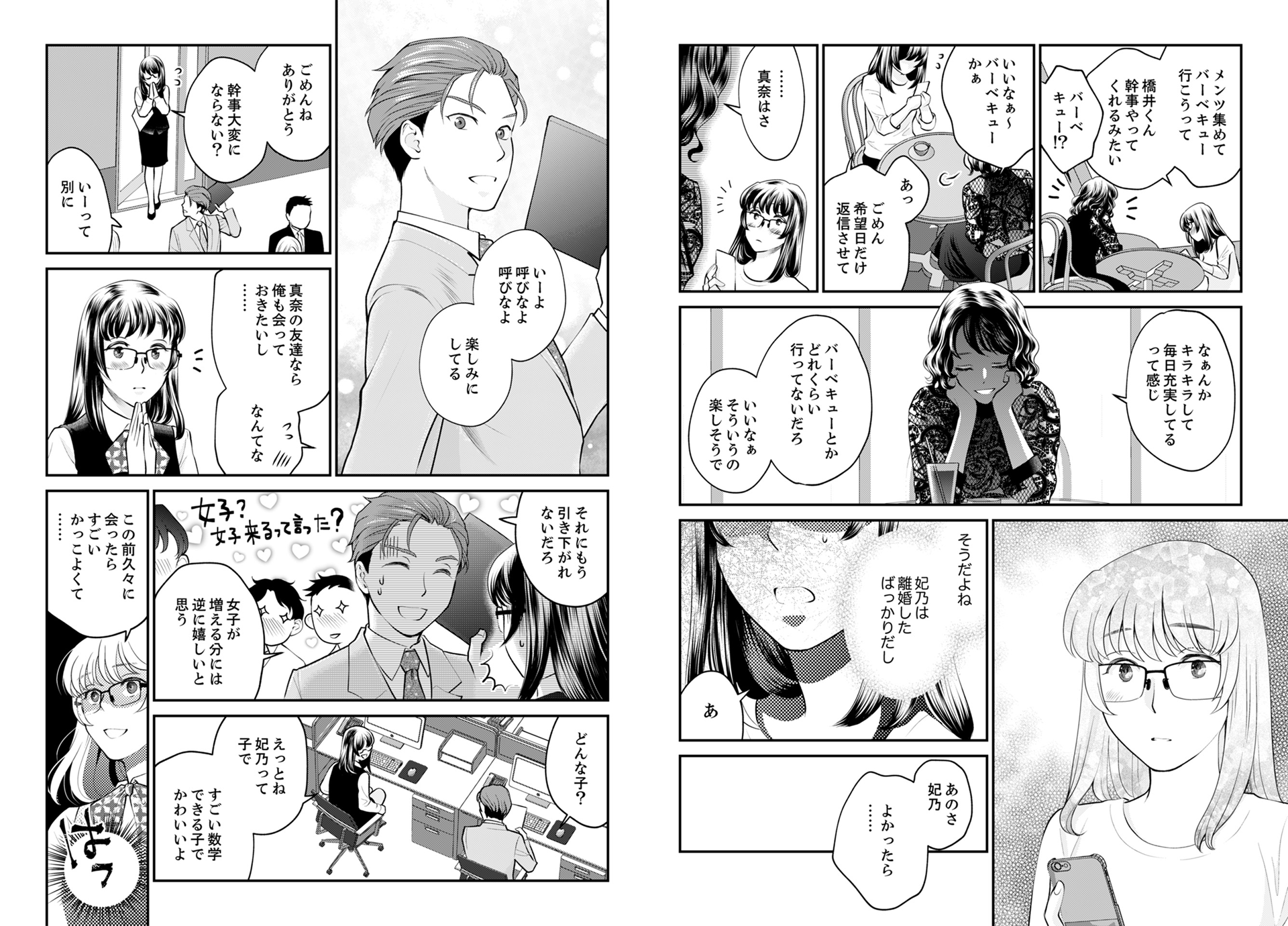 高校時代、真奈にとって唯一の友達だった高遠妃乃。社会人となり再会した妃乃はさらに綺麗になっていた。妃乃に聞かれるまま、想い人の存在を告白する真奈。妃乃が離婚したばかりであることを聞き、彼女を元気づけるため、同僚たちと行くバーベキューに誘うが、そこに現れた妃乃はいつもとは別人のようなファッション、そして言動を繰り返す。徐々に妃乃の別の顔が見え隠れしていく。