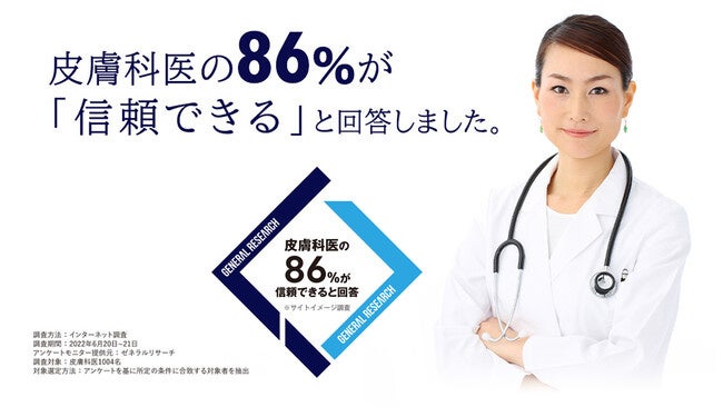 - 皮膚科医の86%が「信頼できる」と回答いただいています。