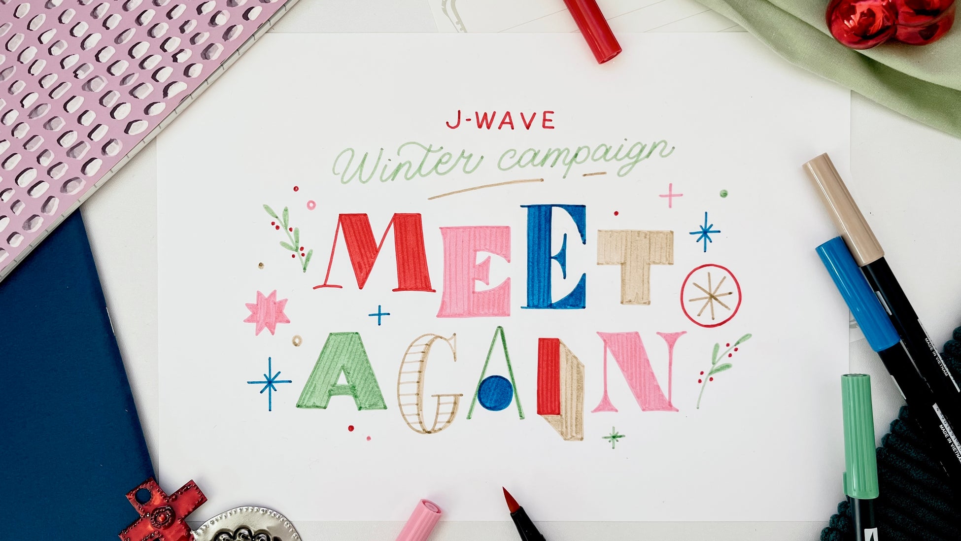 本キャンペーンは、J-WAVEがおくるアートプロジェクト「ARRTSIDER」とも連動。アートワークはレタリングアーティスト・アートディレクターのICHIKAによる描き下ろし。あたたかでハッピーなホリデーシーズンをイメージしながら描いたデザインとなっています。