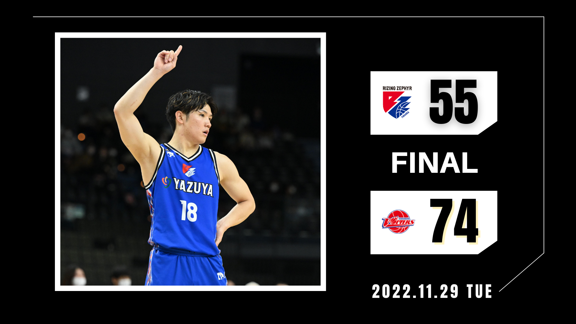 2022年11月29日(火)に開催されましたBリーグ第9節【ライジングゼファーフクオカvs.熊本ヴォルターズ】において“福岡55-74熊本”の結果となりましたことお知らせいたします。