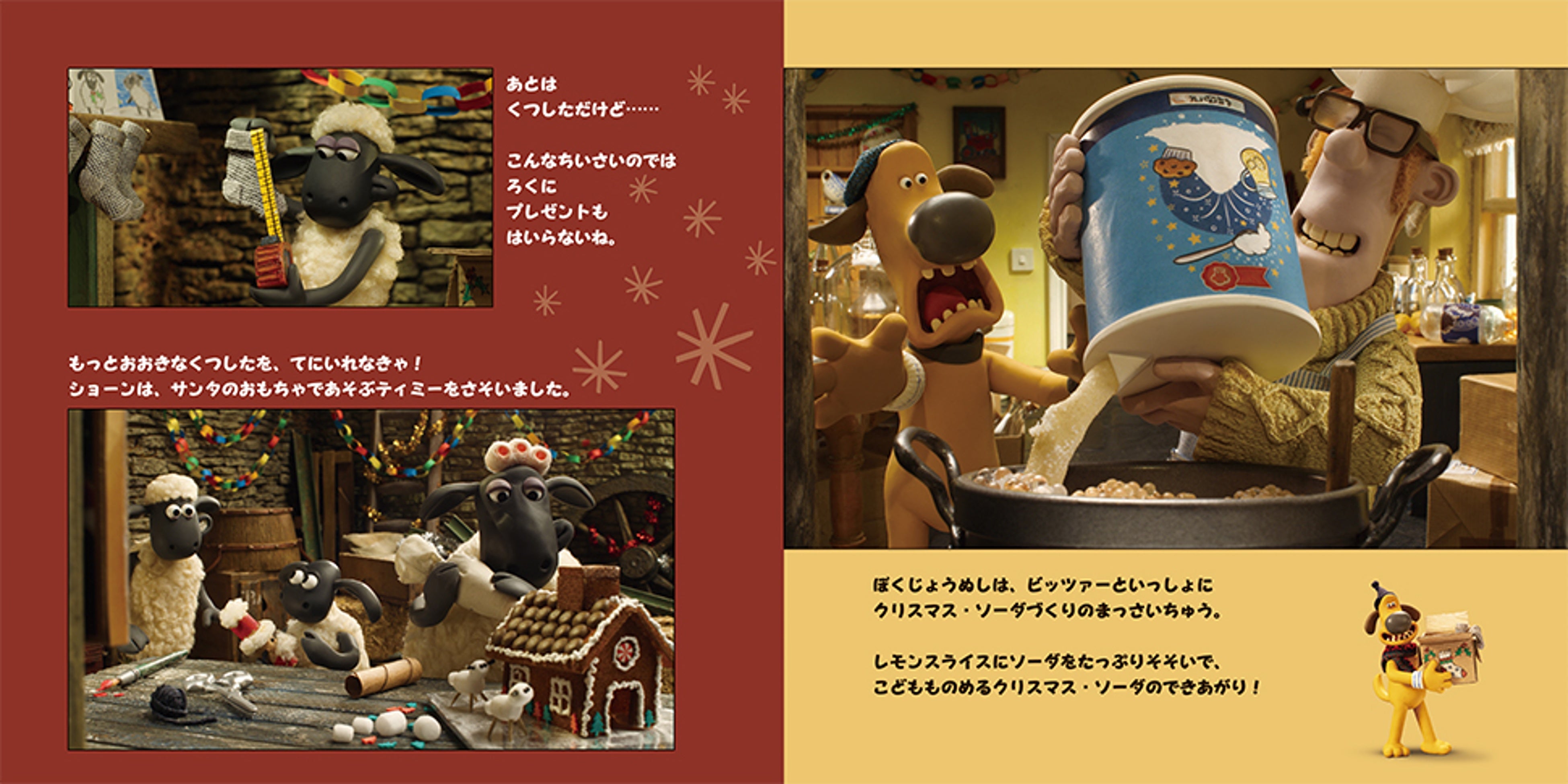 映画のシーンがたっぷり楽しめるカラフルな絵本は、クリスマスの贈り物にも ぴったり! クリスマスイブの夜を、 ショーンたちの楽しい冒険とともにあたたかく描いた絵本。ぜひ映画とともにお楽しみください。