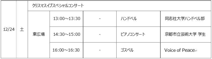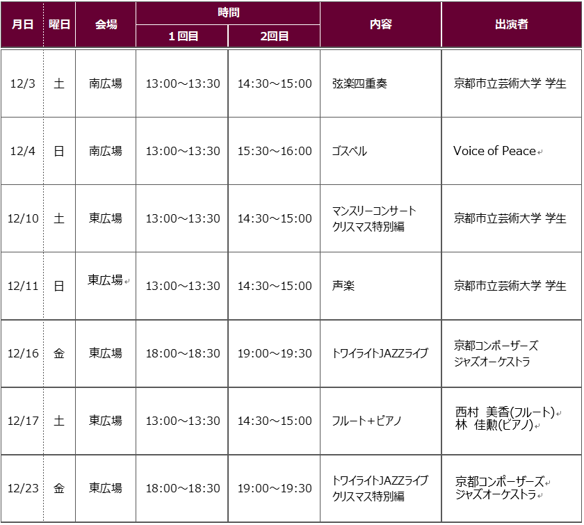【京都駅ビルクリスマスコンサート~音色のギフト~ 開催日時・場所 一覧】