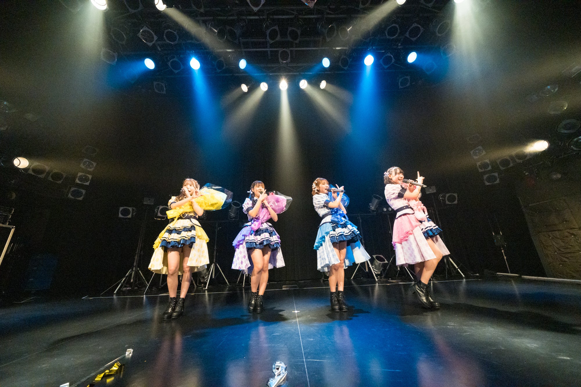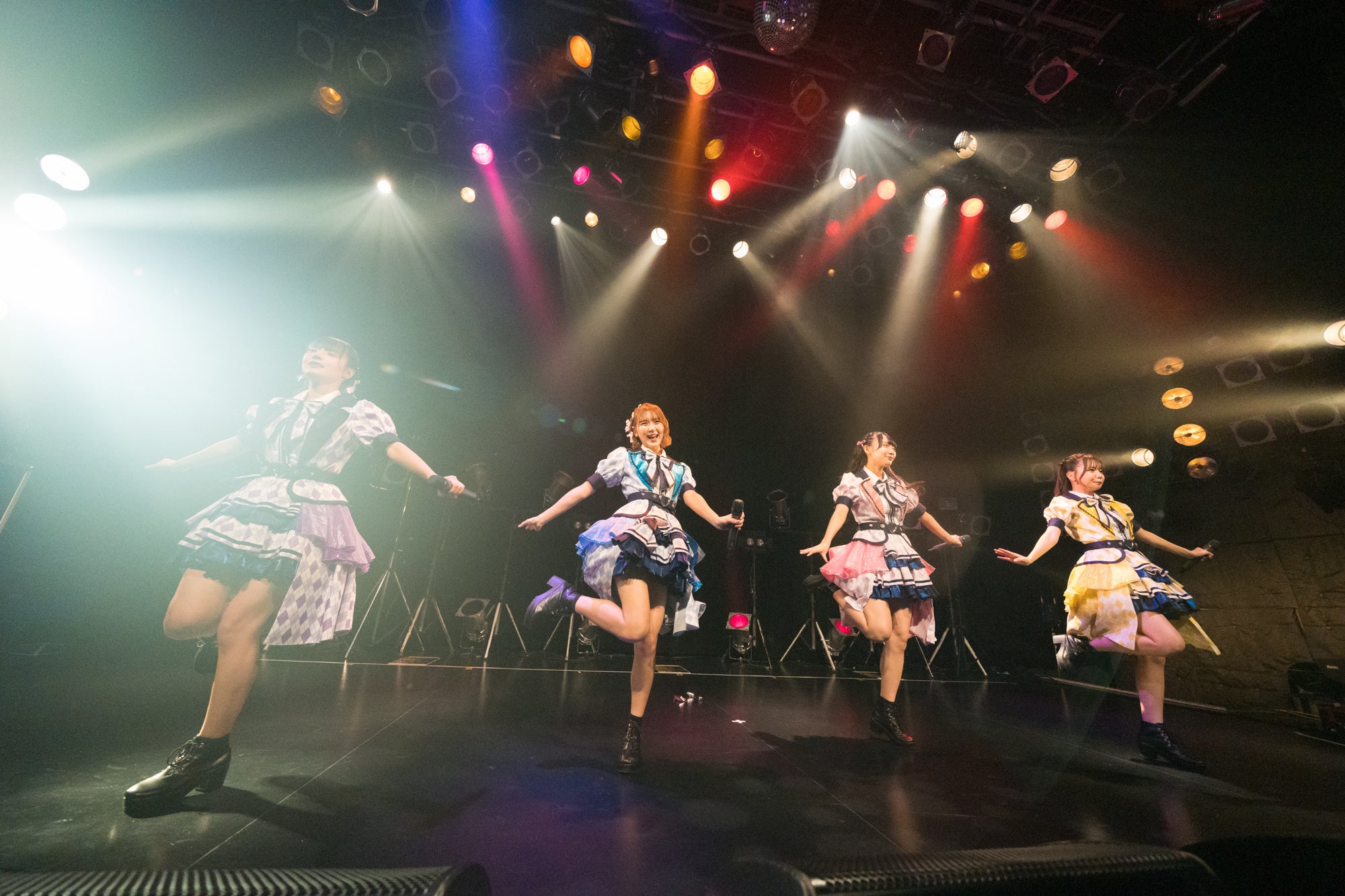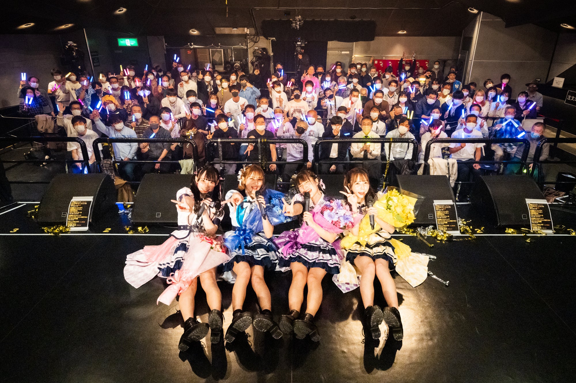今回のツアーは、5人から急遽、葵井ここあ(青色担当)、香山ゆきほ(桃色担当)、柚木ももな(黄色担当)、春澤しおん(紫色担当)の4人体制になって間もない9/27(火)にメンバーも不安を抱える中、ツアーのスタートを切った。ツアータイトル“秋に咲く花”の名の通り、全国8ヶ所でL I V Eをしていく中で少しずつ成長し、美しい花の種を全国各地のライブハウスに蒔いていった。この日のツアーファイナルは、会場いっぱいに訪れたファンが熱視線を送る中、ステージ上で華麗に舞うメンバーの姿に会場のボルテージも最高潮に上がっていった。