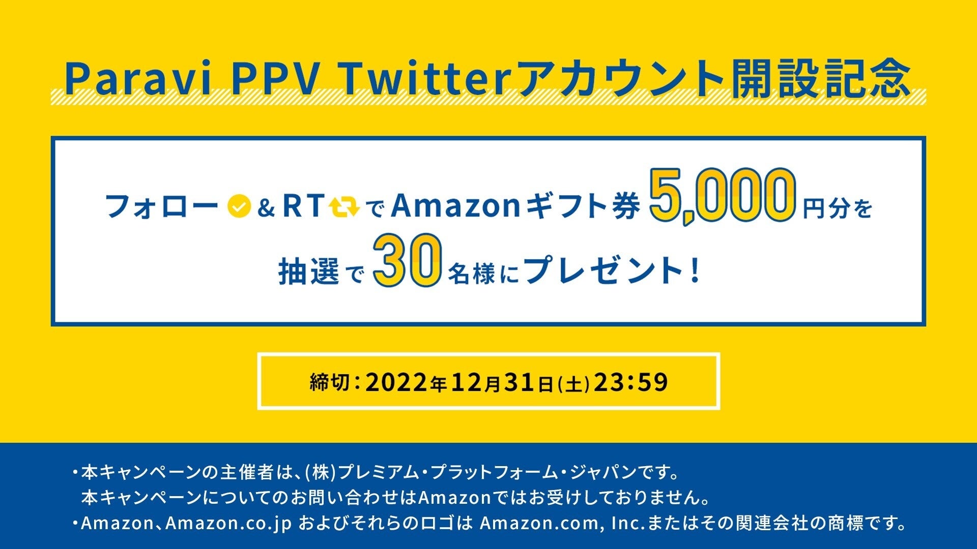 動画配信サービス「Paravi」の【Paravi PPV(ペイ・パー・ビュー)公式 Twitter】をフォロー&RTして、Amazonギフト券を当てよう!